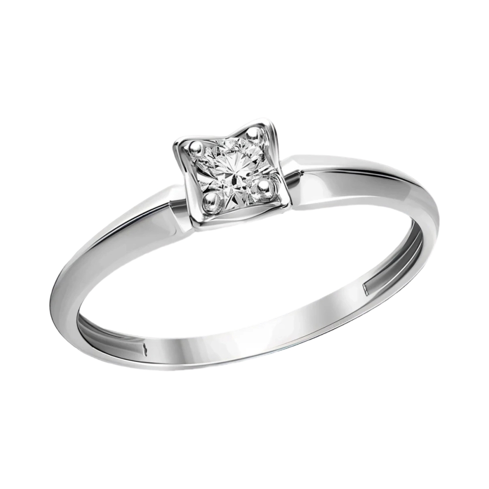 Кольцо помолвочное из белого золота с фианитами