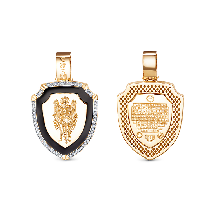 Подвеска из красного золота с фианитами и эмалью