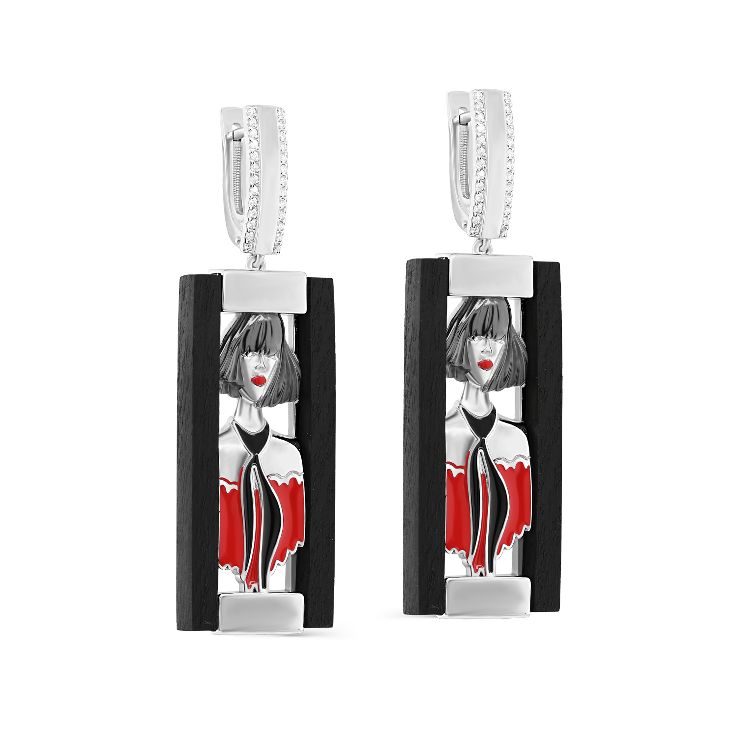 [NAME] => Серьги из серебра с вставкой из дерева и фианитами