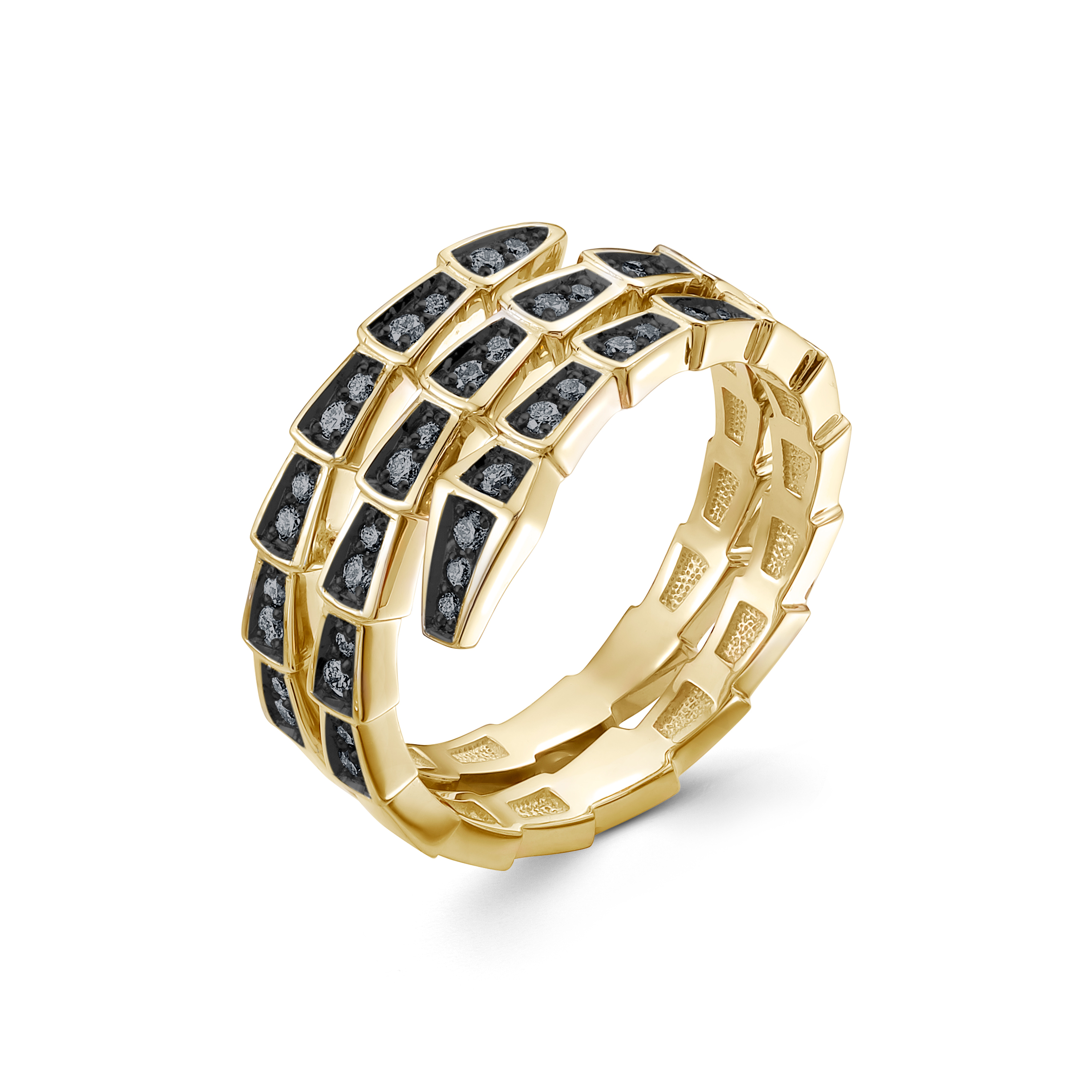 Кольцо из жёлтого золота с чёрными бриллиантами