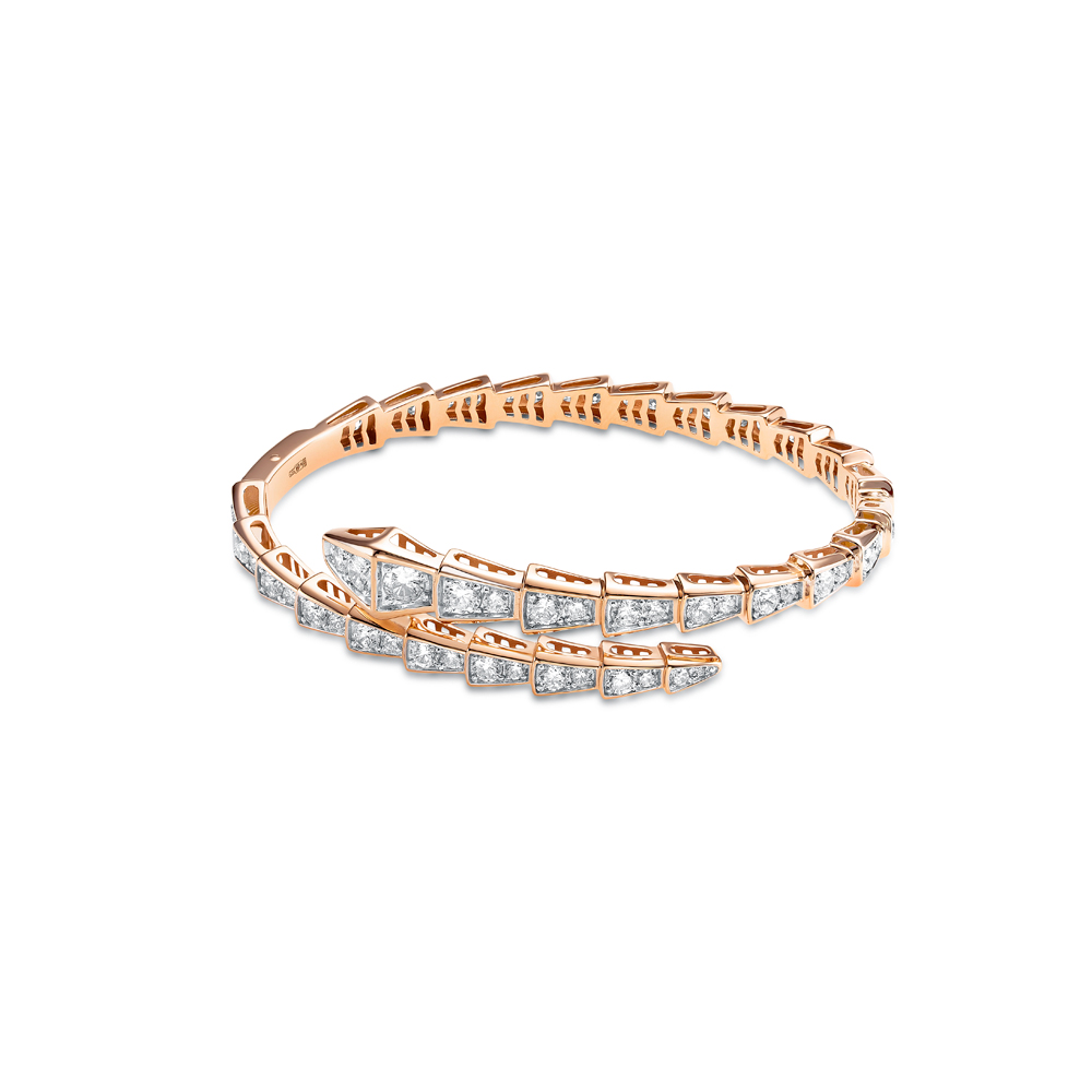 Браслет жёсткий из красного золота с фианитами 125948