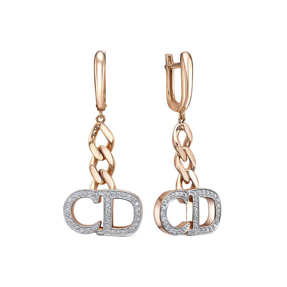 Серьги из красного золота с фианитами