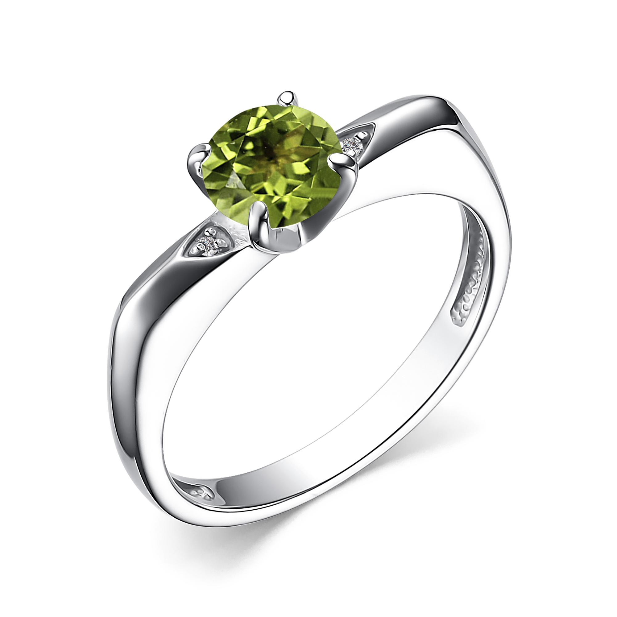 Кольцо в серебре с хризолитом и бриллиантом 126870