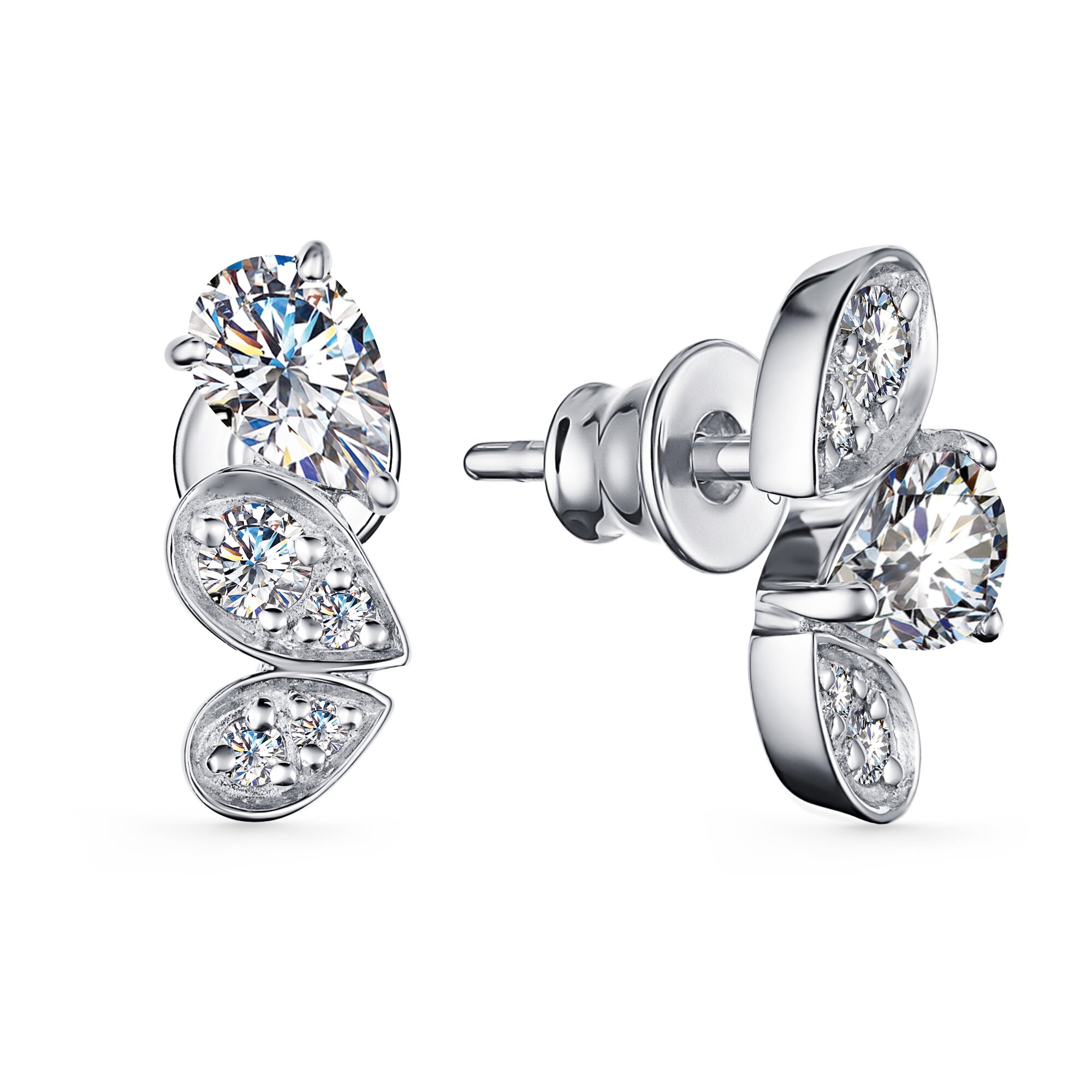 Серьги из серебра с горным хрусталем и фианитами 126940