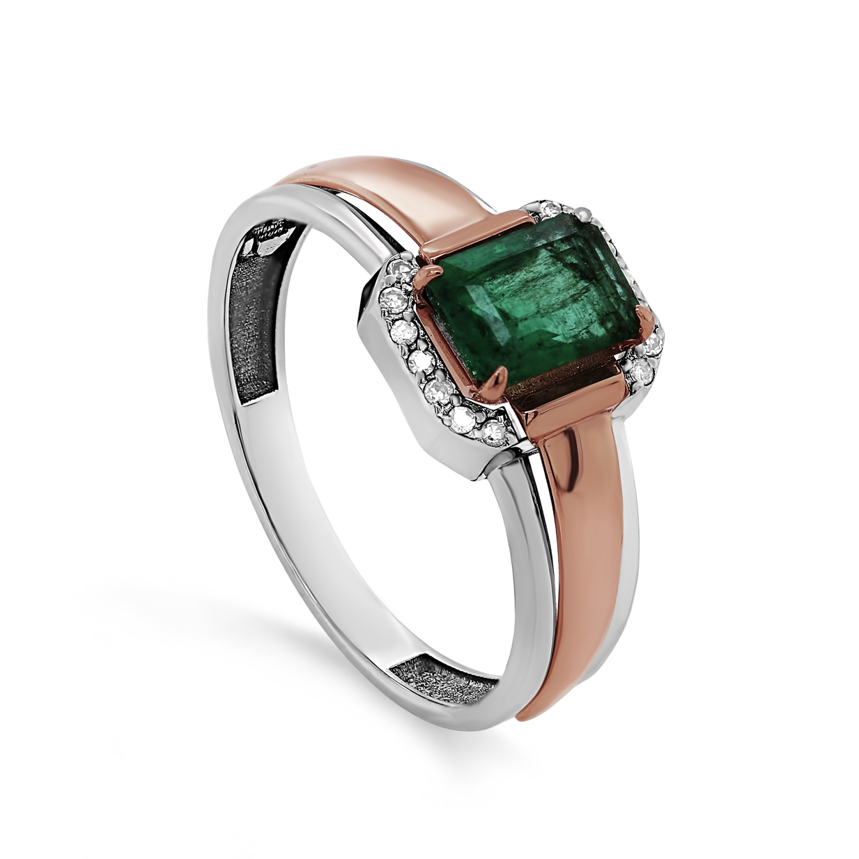 Кольцо из комбинированного золота с бриллиантами и изумрудом
