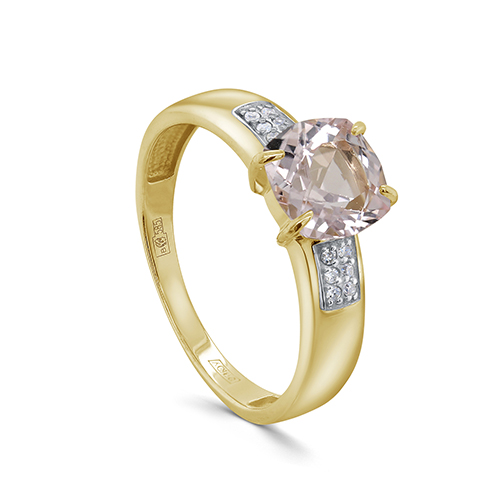 Кольцо из жёлтого золота с бриллиантами и морганитом 127452