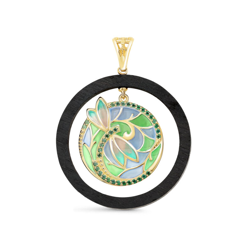 Подвеска из серебра с фианитами и граб.деревом