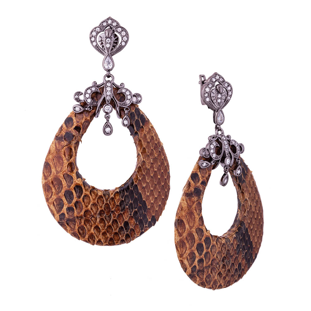 [NAME] => Серьги из серебра с цирконием и кожей питона