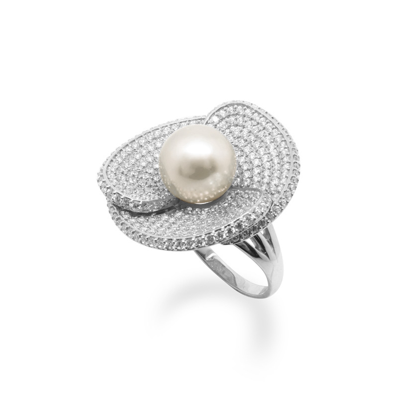 [NAME] => Кольцо из серебра с фианитами и жжемчугом