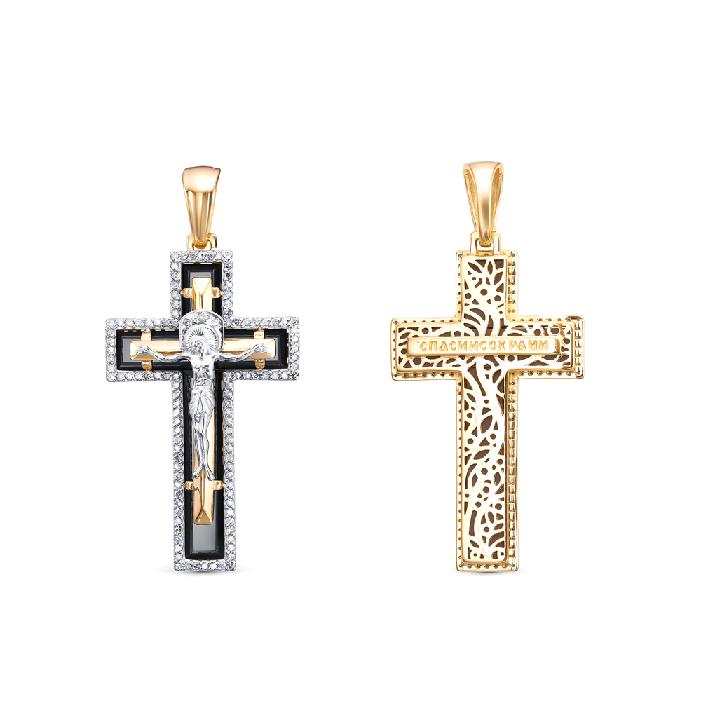 [NAME] => Крест из желтого золота с ониксом и фианитами