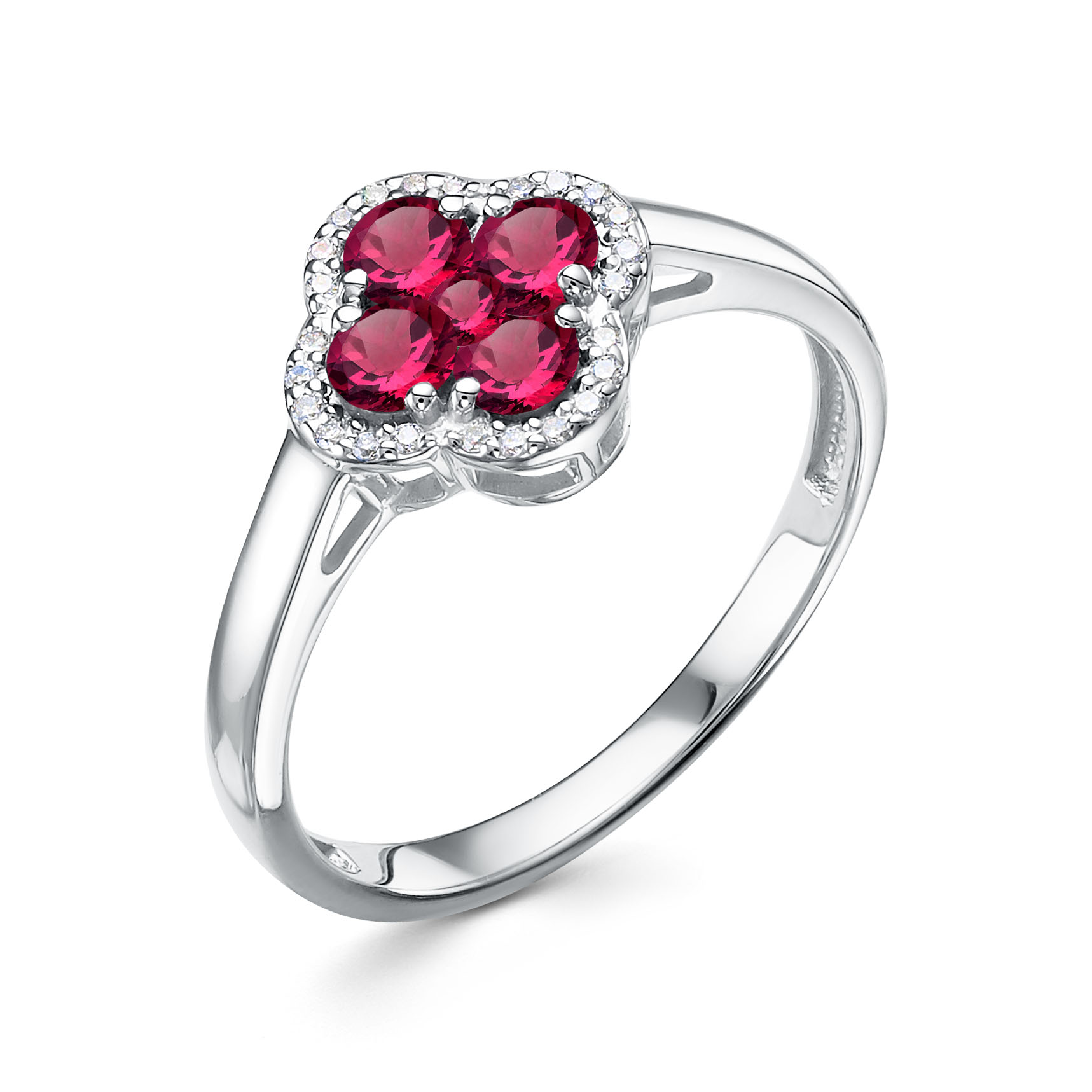 Кольцо из белого золота с рубинами и бриллиантами 131379