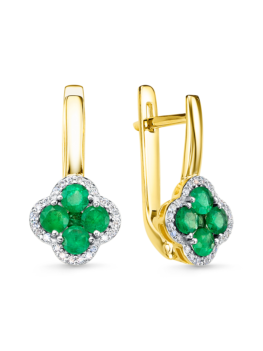 Серьги из желтого золота с изумрудами и бриллиантами 131392