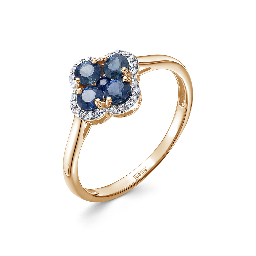 Кольцо из красного золота с сапфиром и бриллиантами 131472