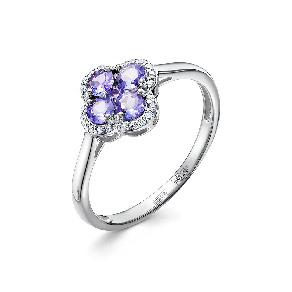 Кольцо из белого золота с танзанитом и бриллиантами