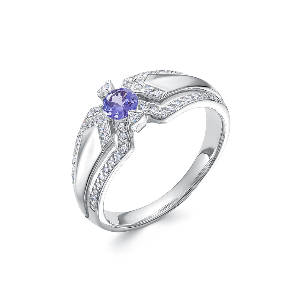 Кольцо из белого золота с танзанитом и бриллиантами 131478