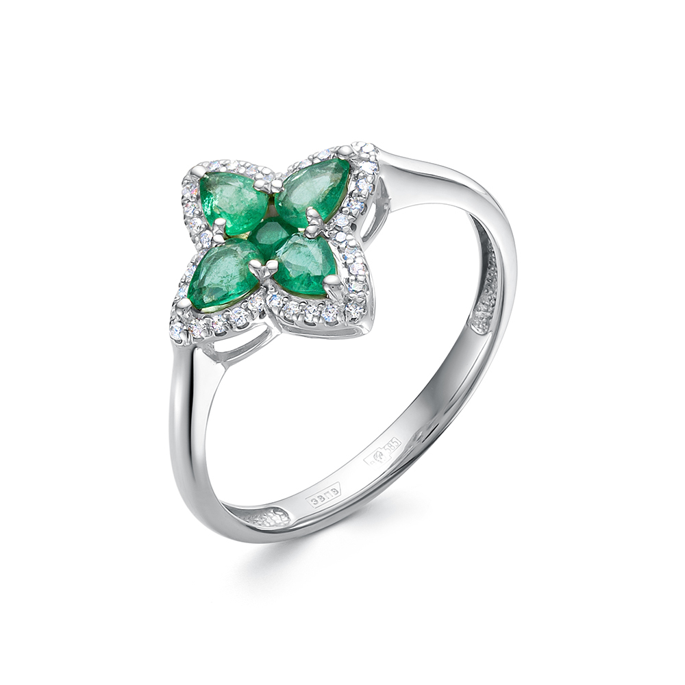 Кольцо из белого золота с изумрудом и бриллиантами 131479