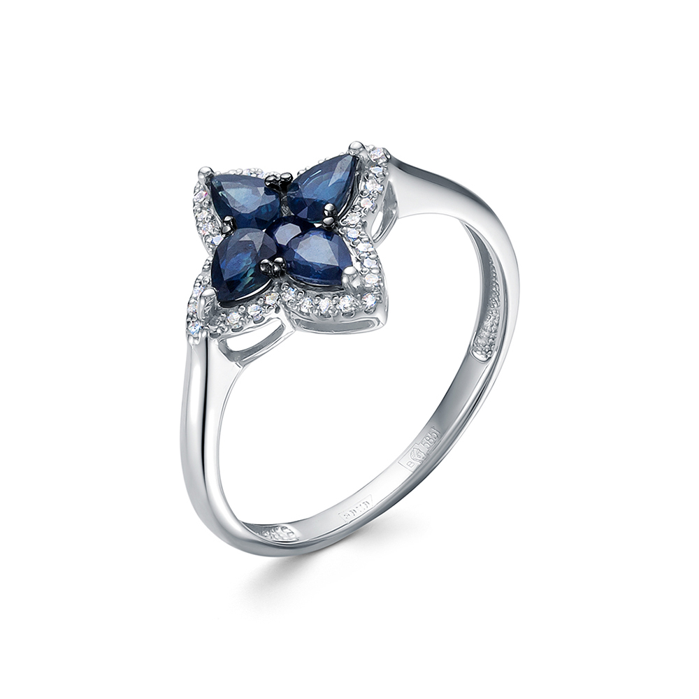 Кольцо из белого золота с сапфиром и бриллиантами 131480