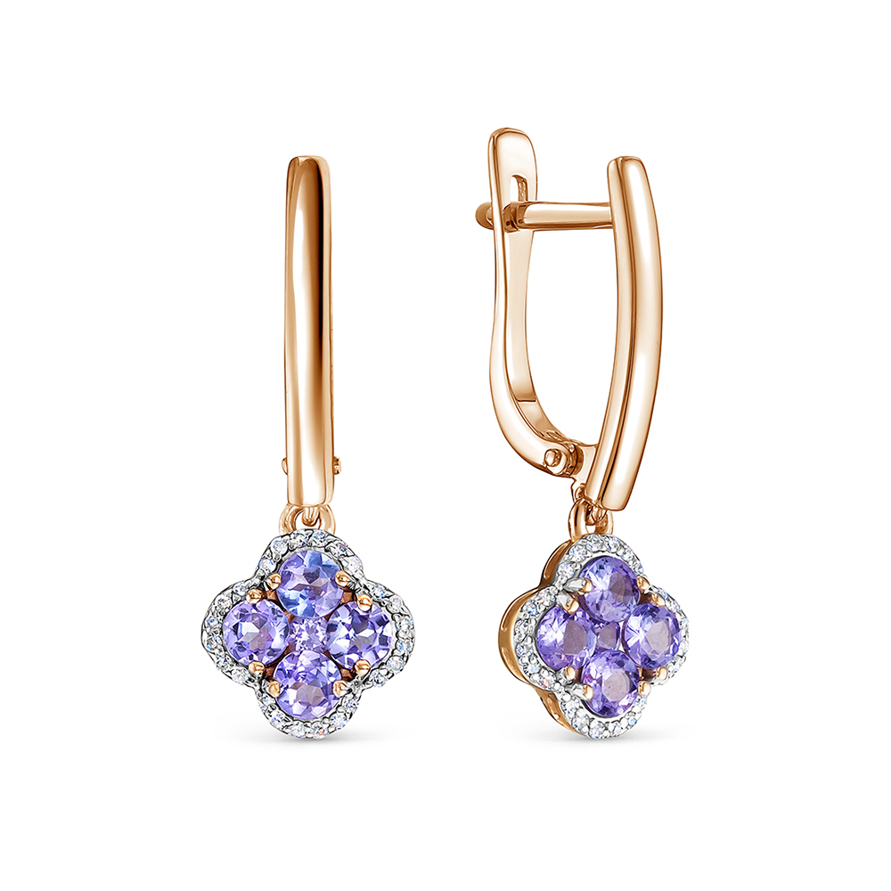 Серьги из красного золота с танзанитом и бриллиантами 131481