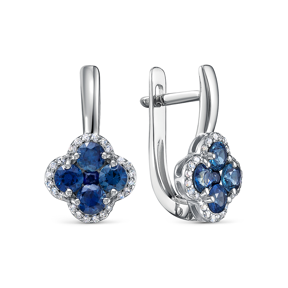 Серьги из белого золота с сапфиром и бриллиантами 131487