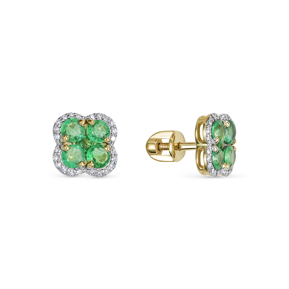 Серьги из желтого золота с изумрудами и бриллиантами 131495