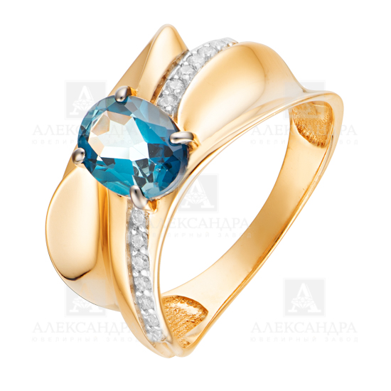 Кольцо из красного золота с ситаллом и фианитами 131977