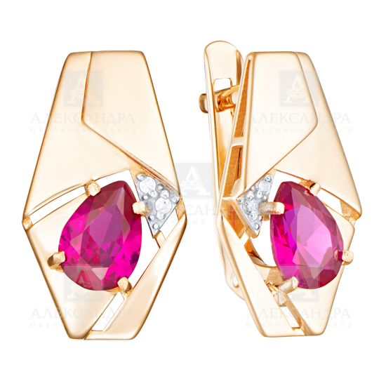 Серьги из красного золота с рубином синт.и фианитами 132028