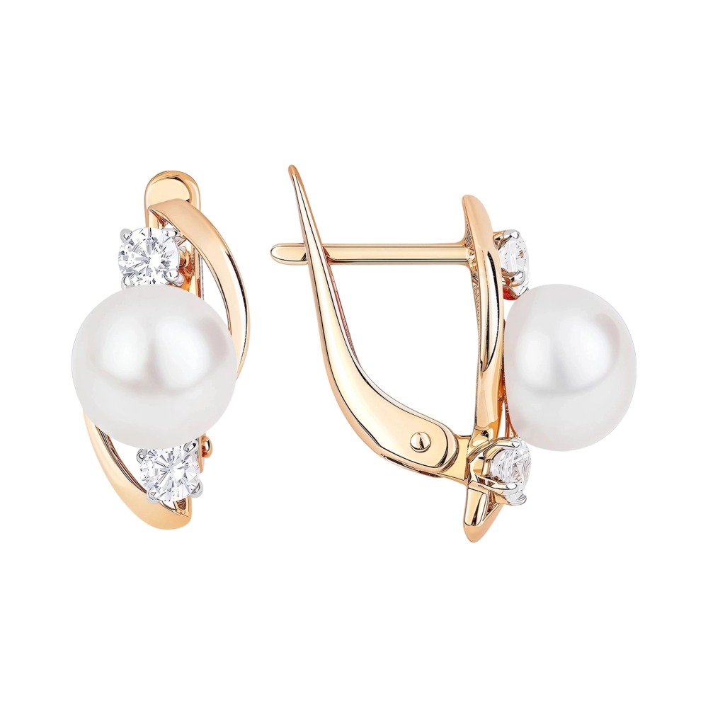 [NAME] => Серьги из красного золота с жемчугом и фианитами