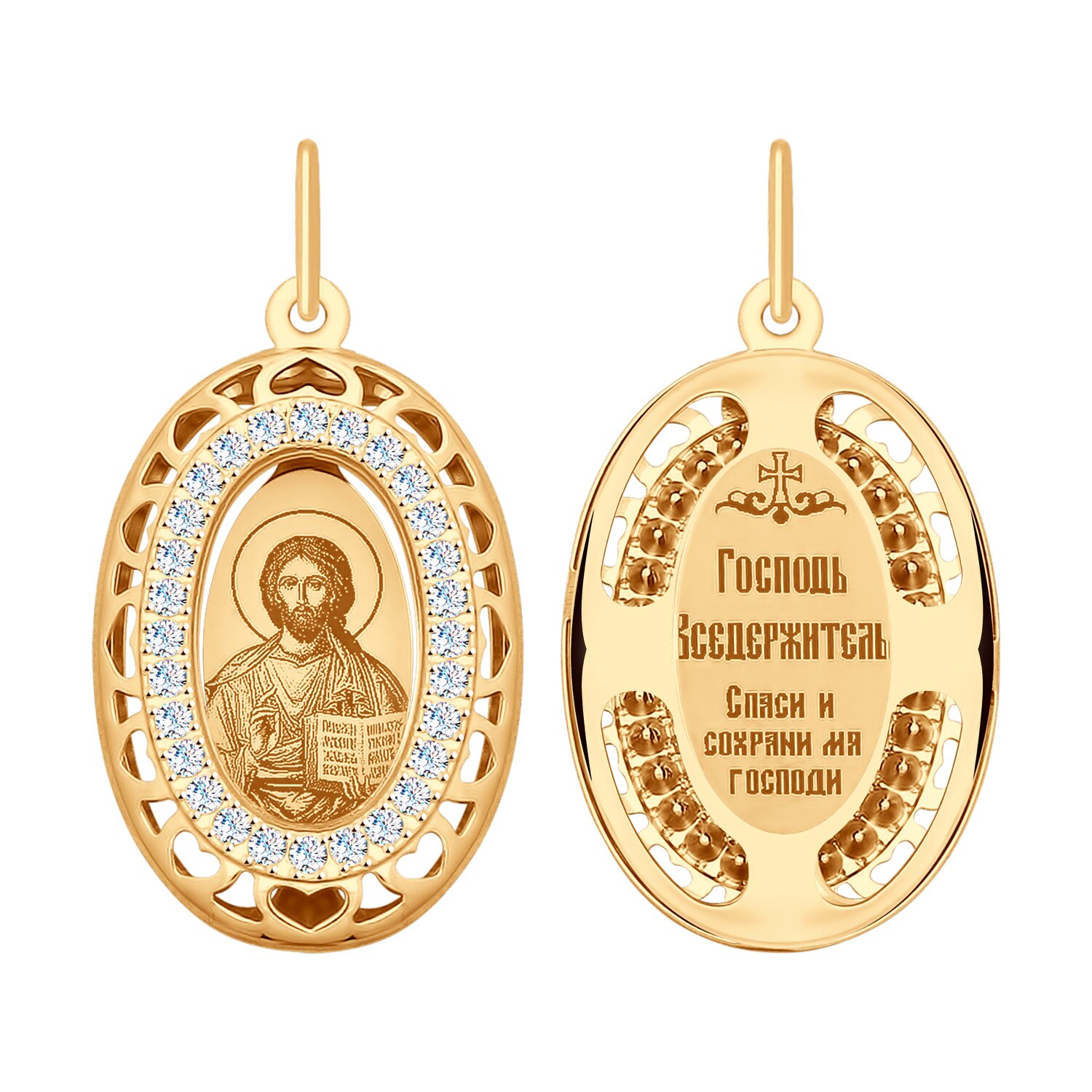 Иконка из красного золота с лазерной обработкой с фианитами 134678