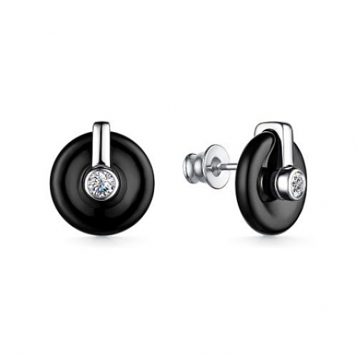 [NAME] => Серьги из серебра с черным ониксом и фианитами