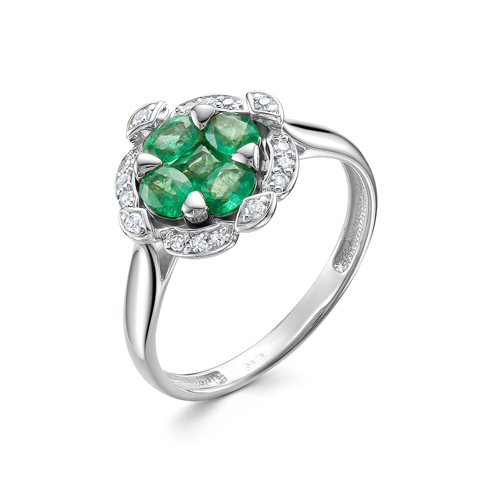 Кольцо из белого золота с изумрудами и бриллиантами