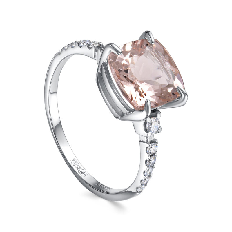 Кольцо из белого золота с бриллиантами и морганитом 134832