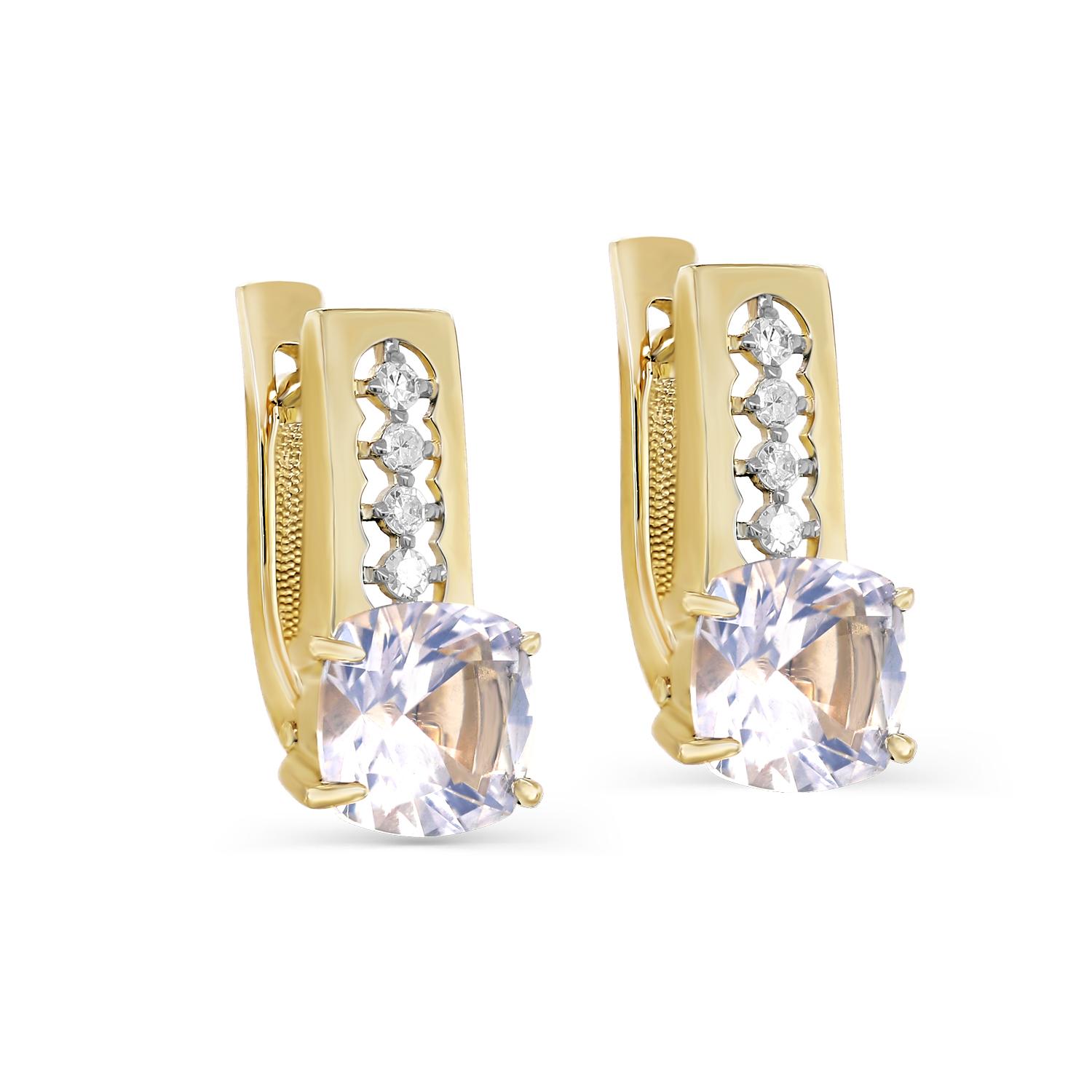 Серьги из желтого золота с кварцем и бриллиантами