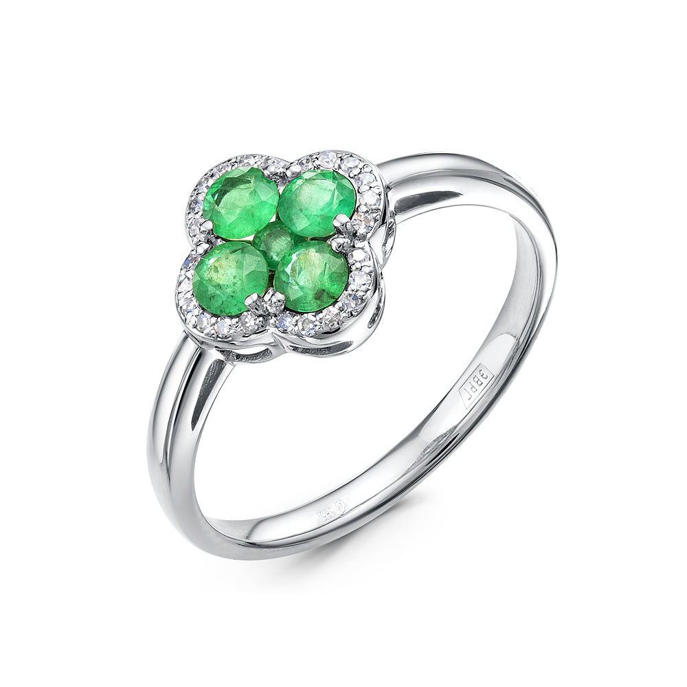 Кольцо из белого золота с изумрудами и бриллиантами 140426