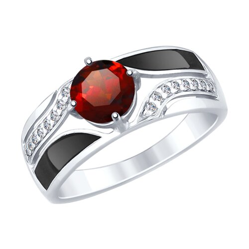 Кольцо из серебра с эмалью и гранатом и фианитами 141152