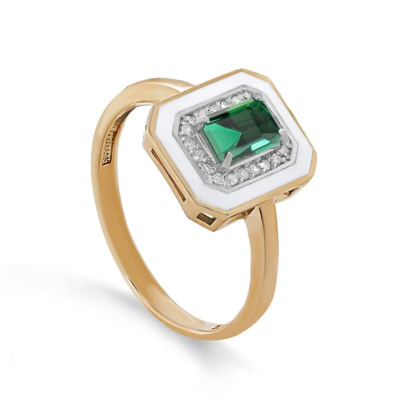 Кольцо из красного золота с изумрудом и бриллиантами 141731