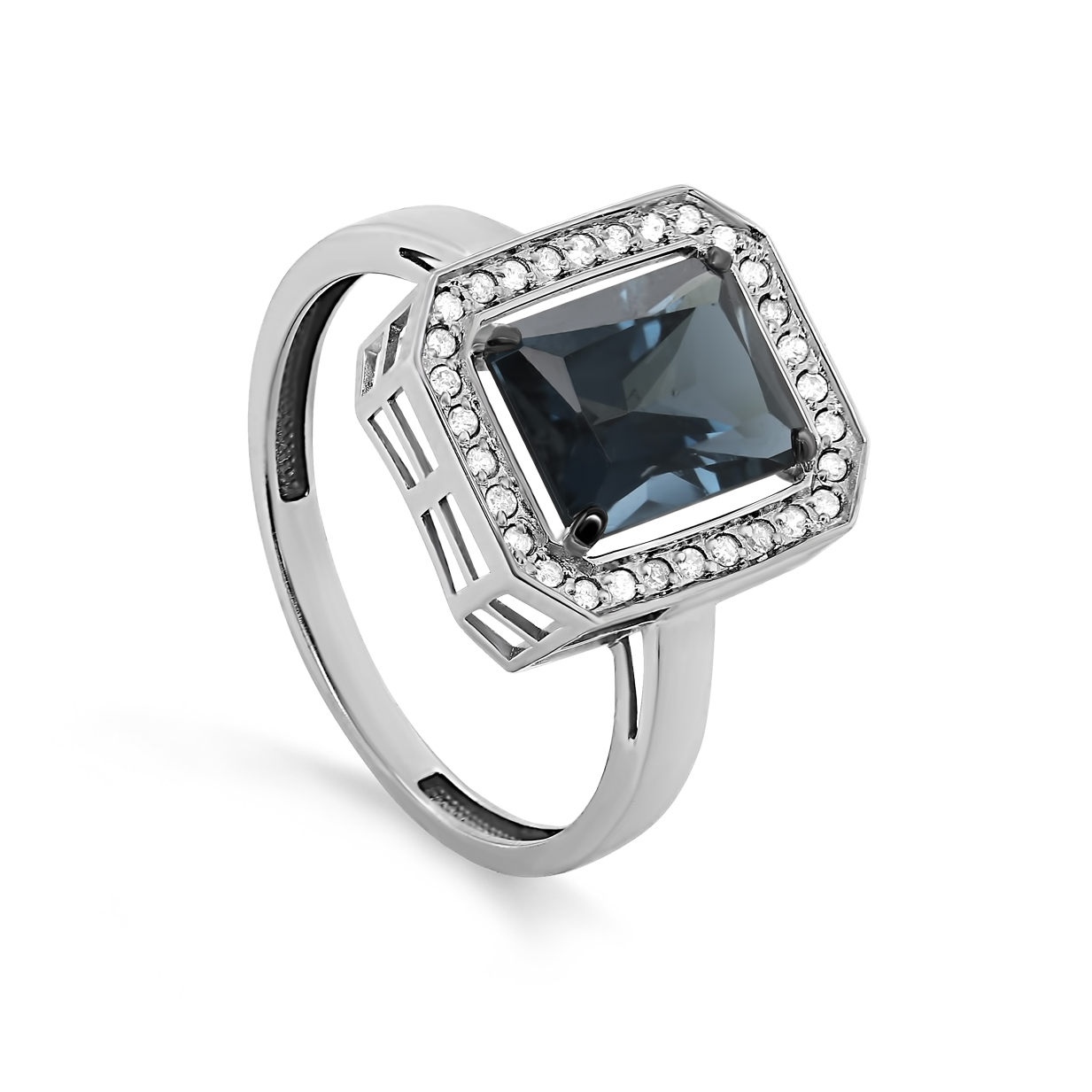 Кольцо из белого золота с бриллиантами и топазом 141736
