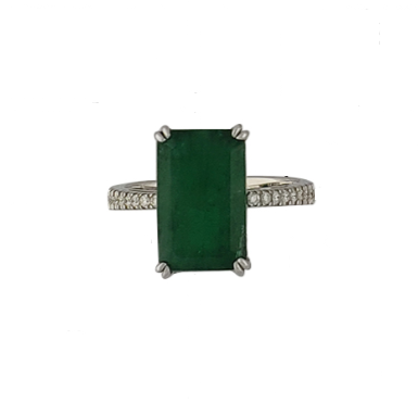 Кольцо из белого золота с изумрудом и бриллиантами 141742