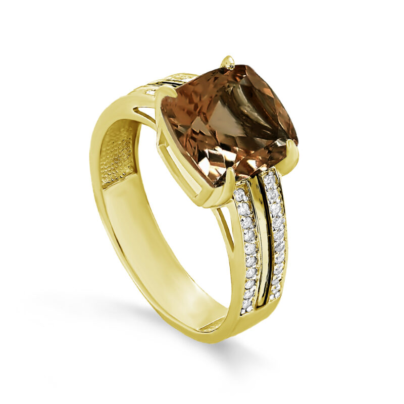 Кольцо из жёлтого золота с бриллиантами и раух топазом