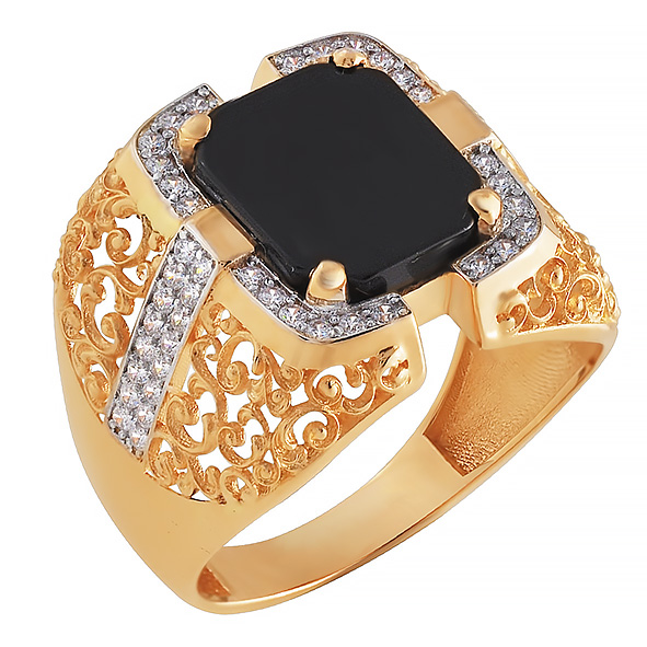 Мужская печатка из красного золота с агатом и фианитами 141803