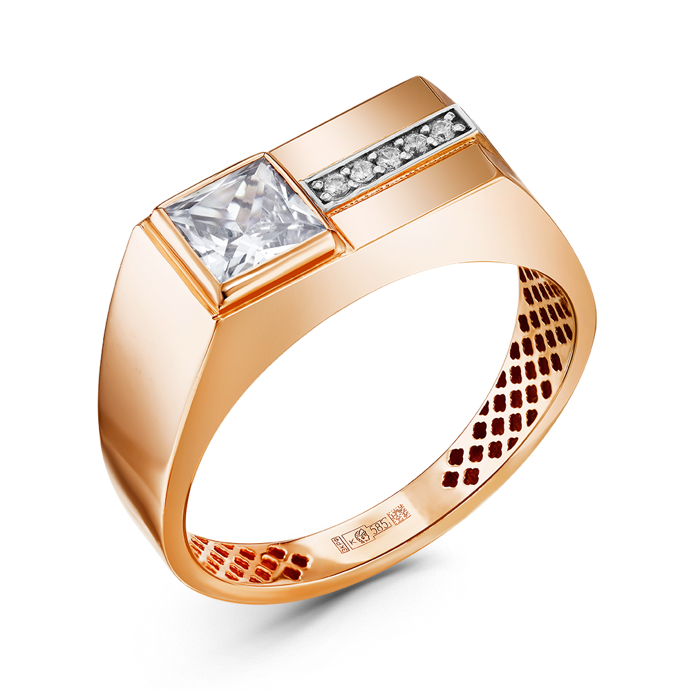 Печатка мужская из красного золота с фианитами 141804
