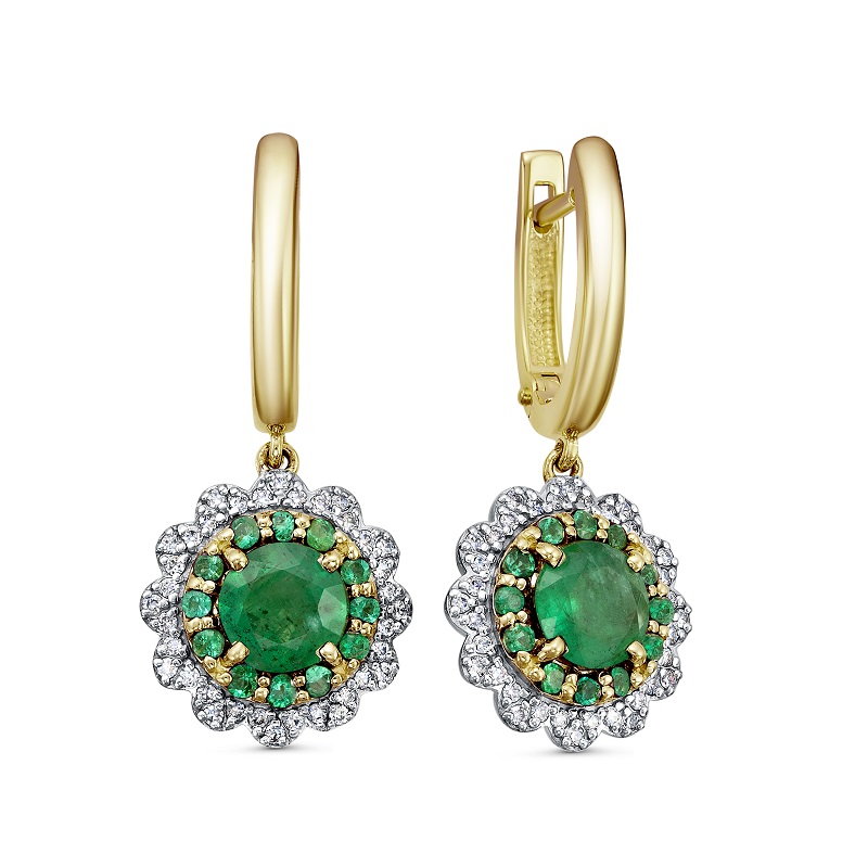 Серьги из желтого золота с изумрудами и бриллиантами 142148