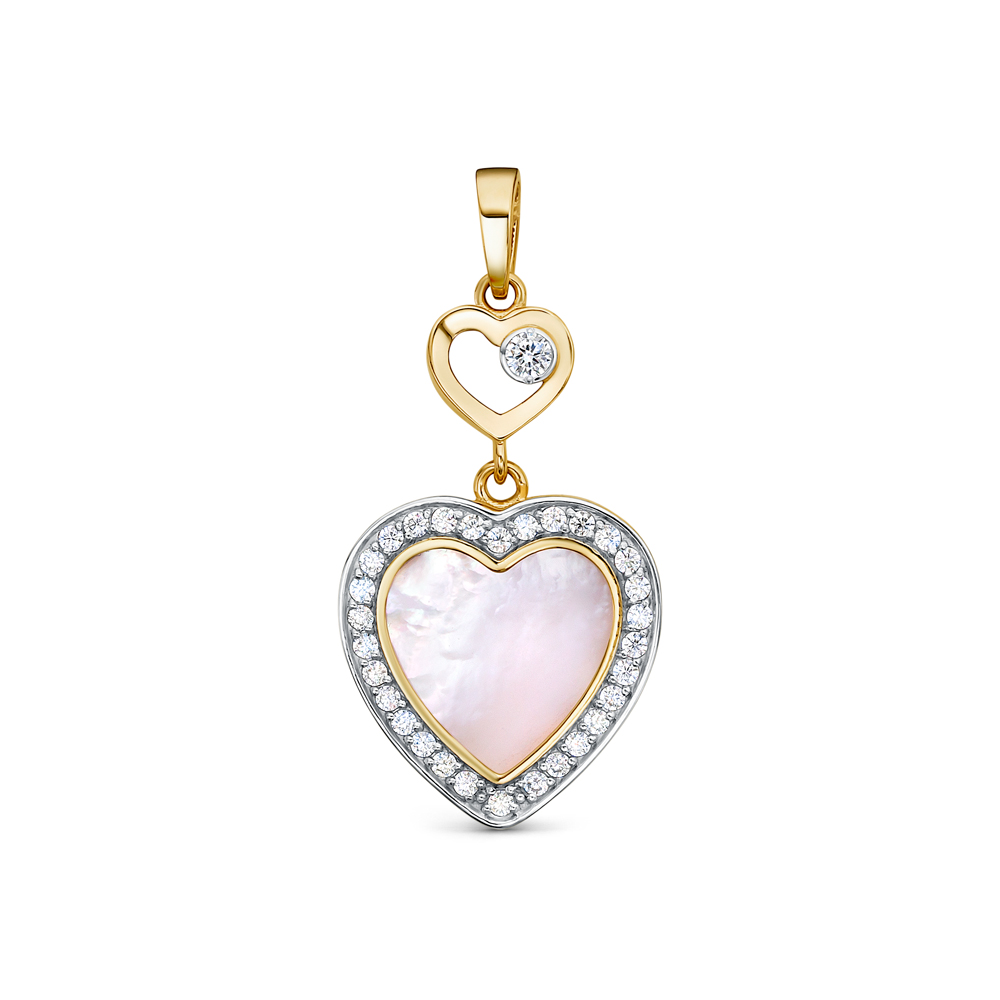 Подвеска из желтого золота с перламутром и фианитами