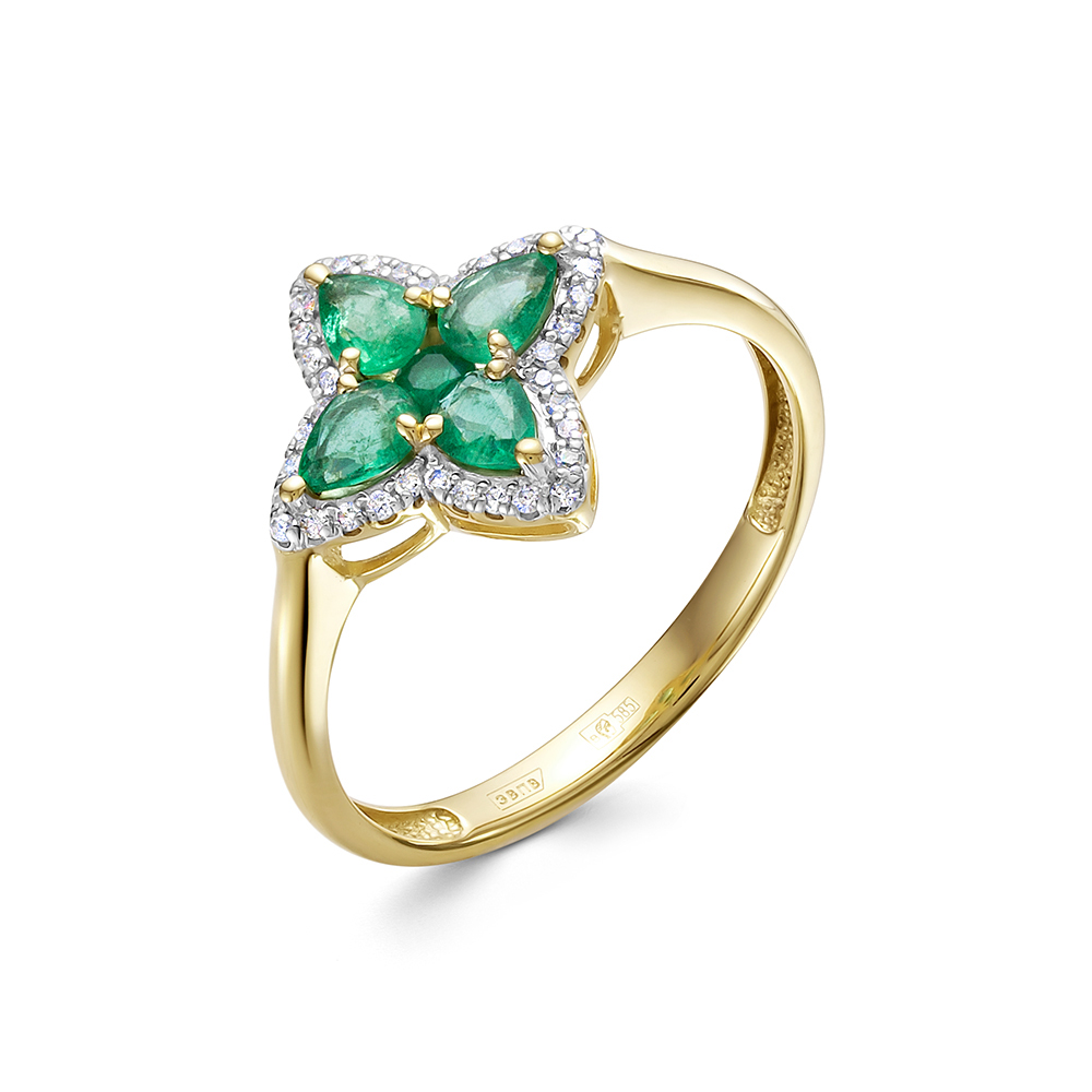 Кольцо из желтого золота с изумрудом и бриллиантами