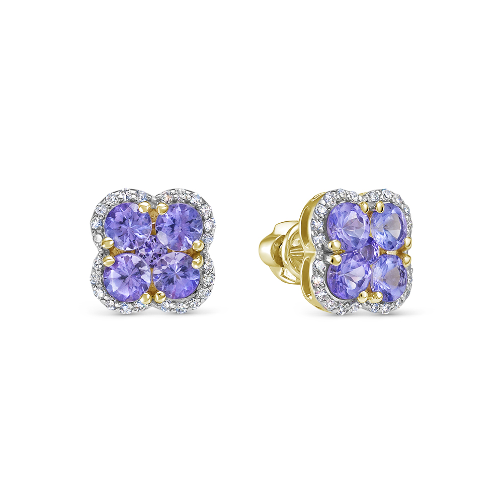 Серьги из желтого золота с танзанитом и бриллиантами
