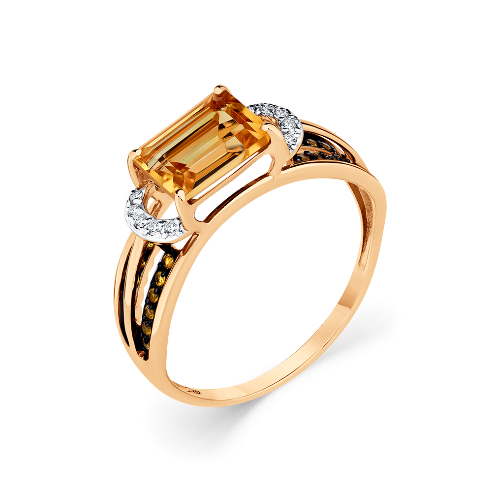 Кольцо из красного золота с цитрином и фианитами
