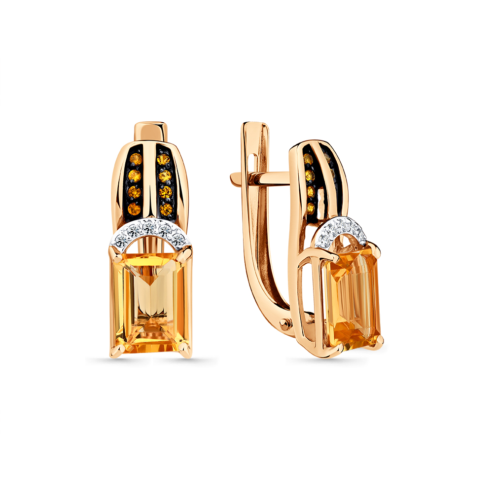 Серьги из красного золота с цитрином и фианитами 142891