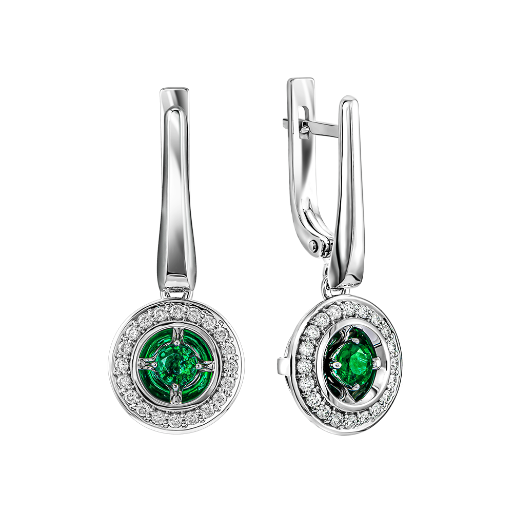 Серьги из белого золота с изумрудами и бриллиантами