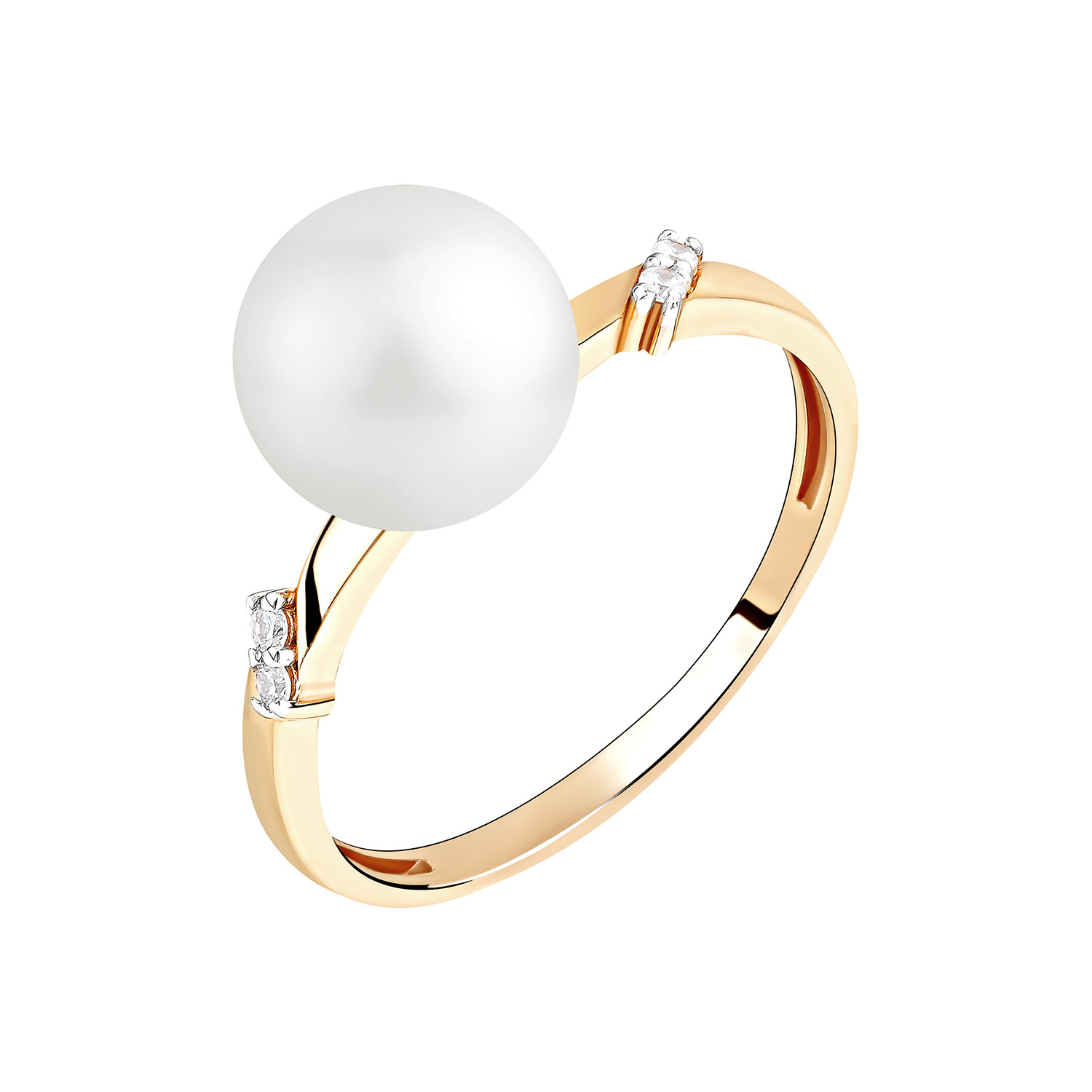 Кольцо из красного золота с жемчугом и фианитами 144091