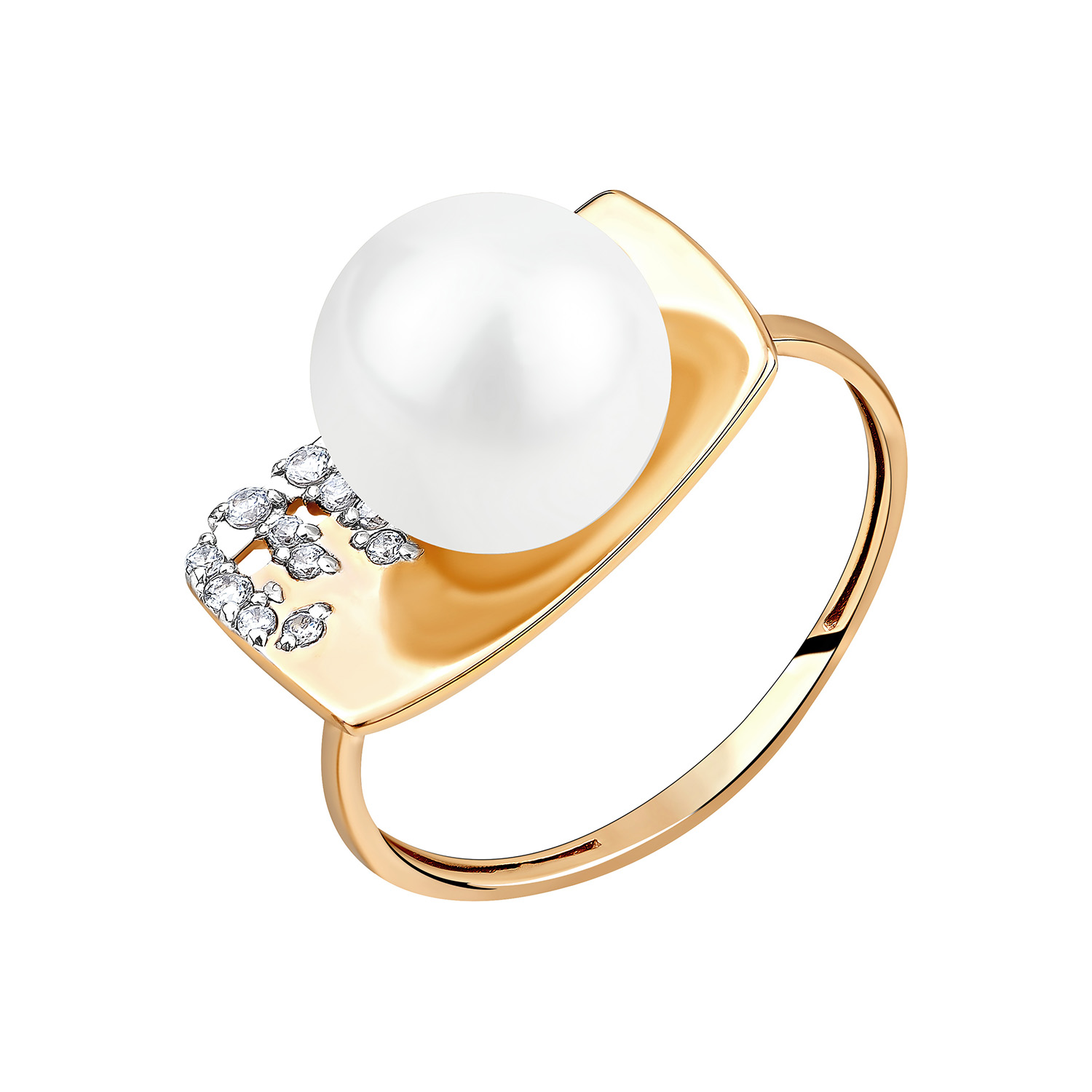 Кольцо из красного золота с жемчугом и фианитами 144096