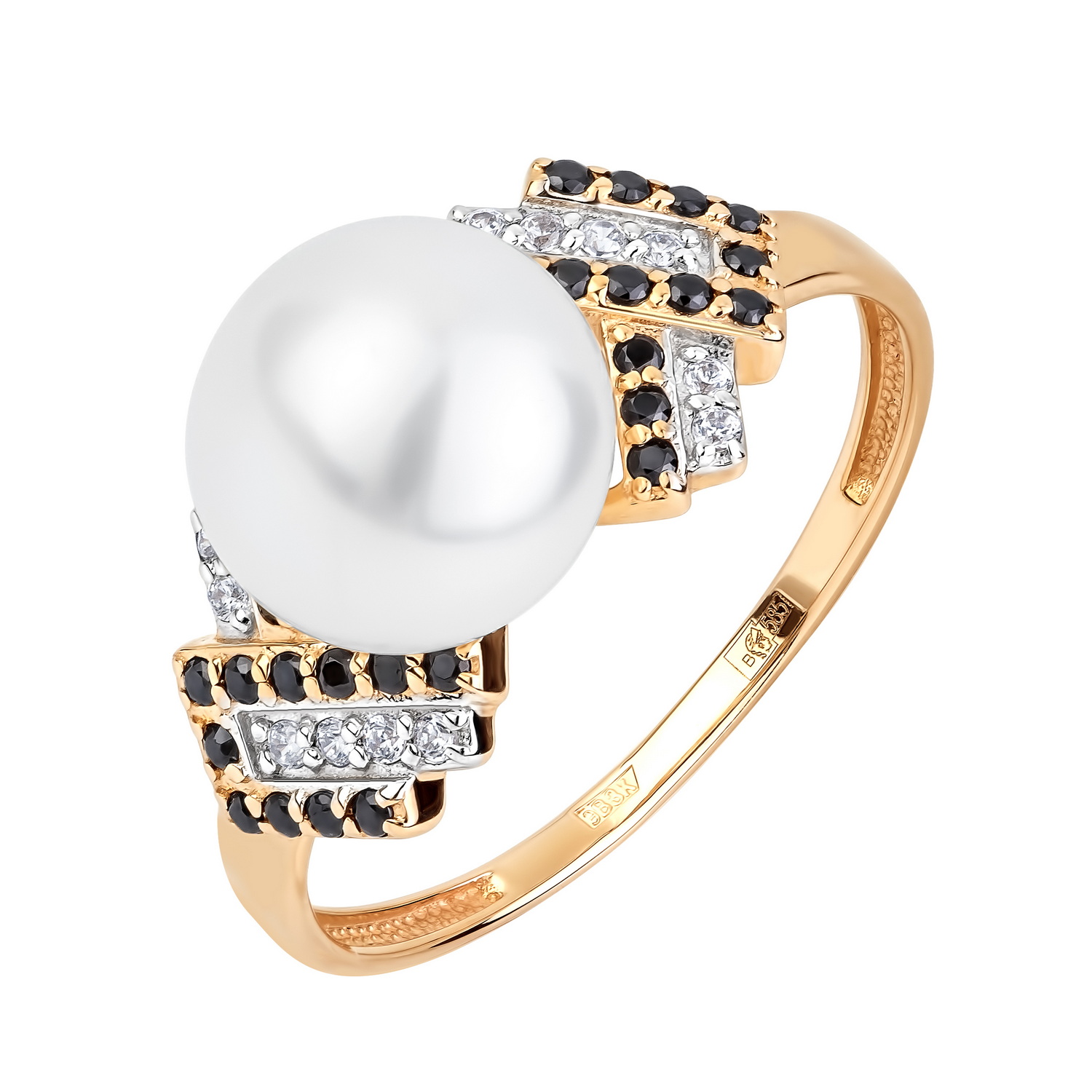 Кольцо из красного золота с жемчугом и фианитами